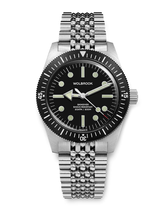 Skindiver WT Automatic Watch - Black Bezel & Vintage Lum