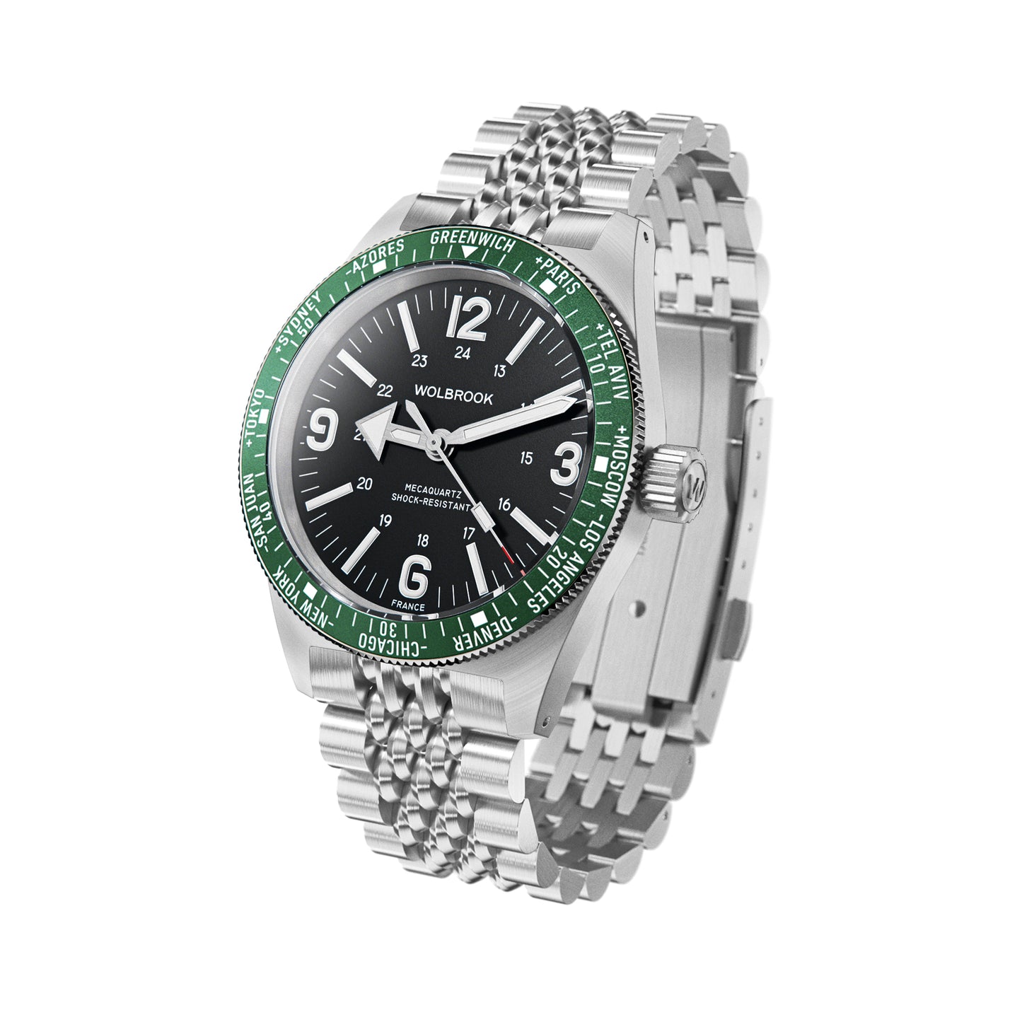 - 60 min / sec timing and world cities time zones via rotating bezel