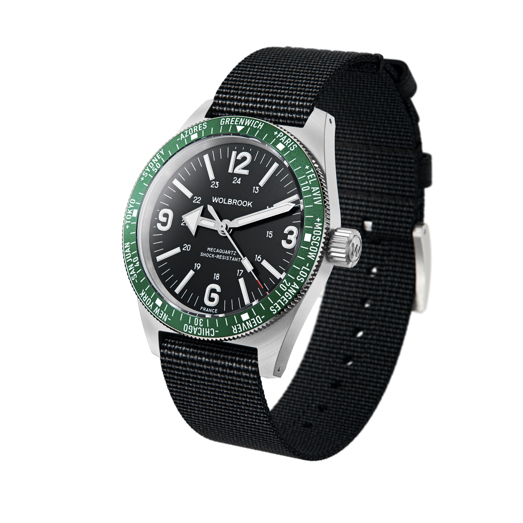 - 60 min / sec timing and world cities time zones via rotating bezel